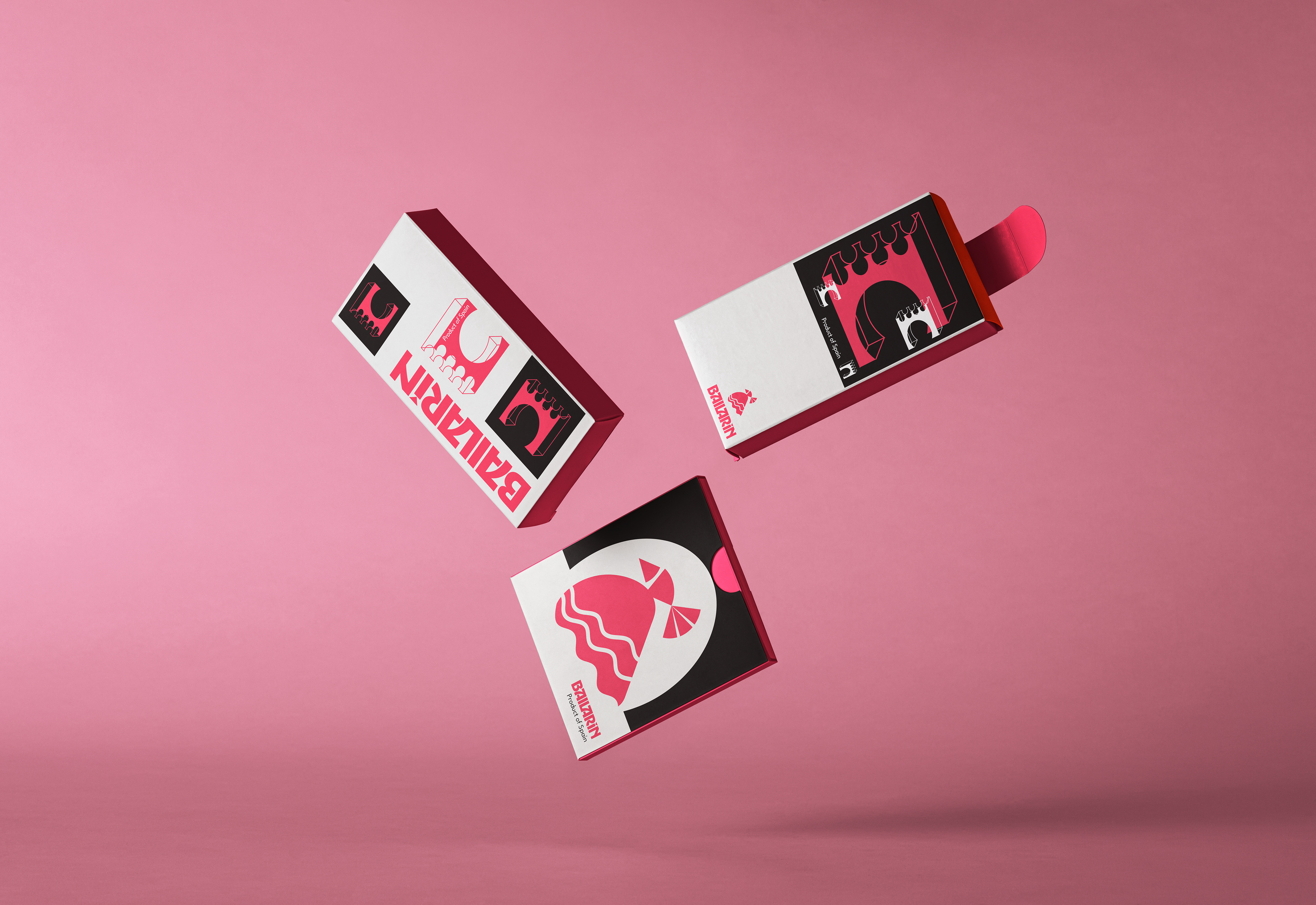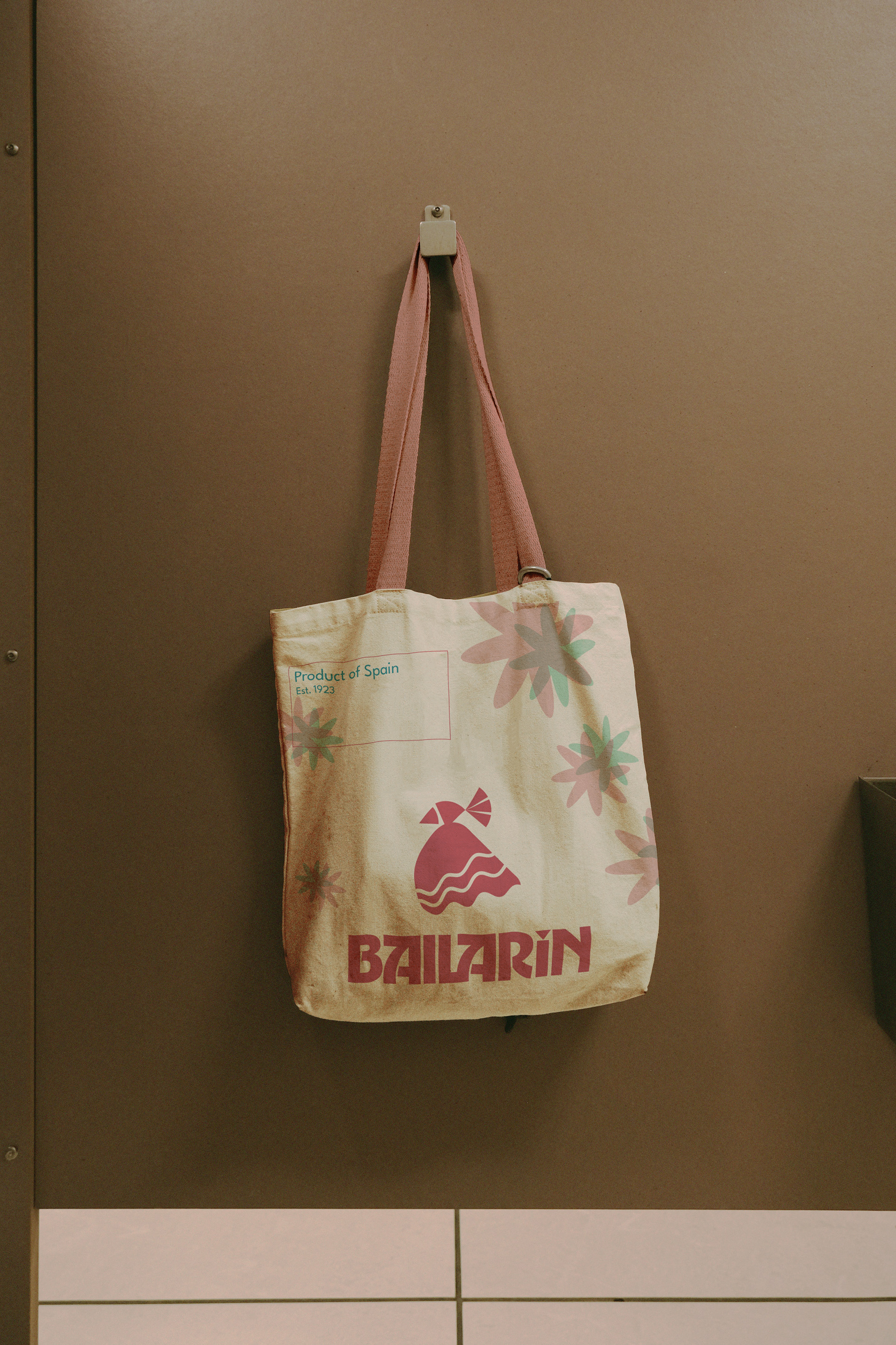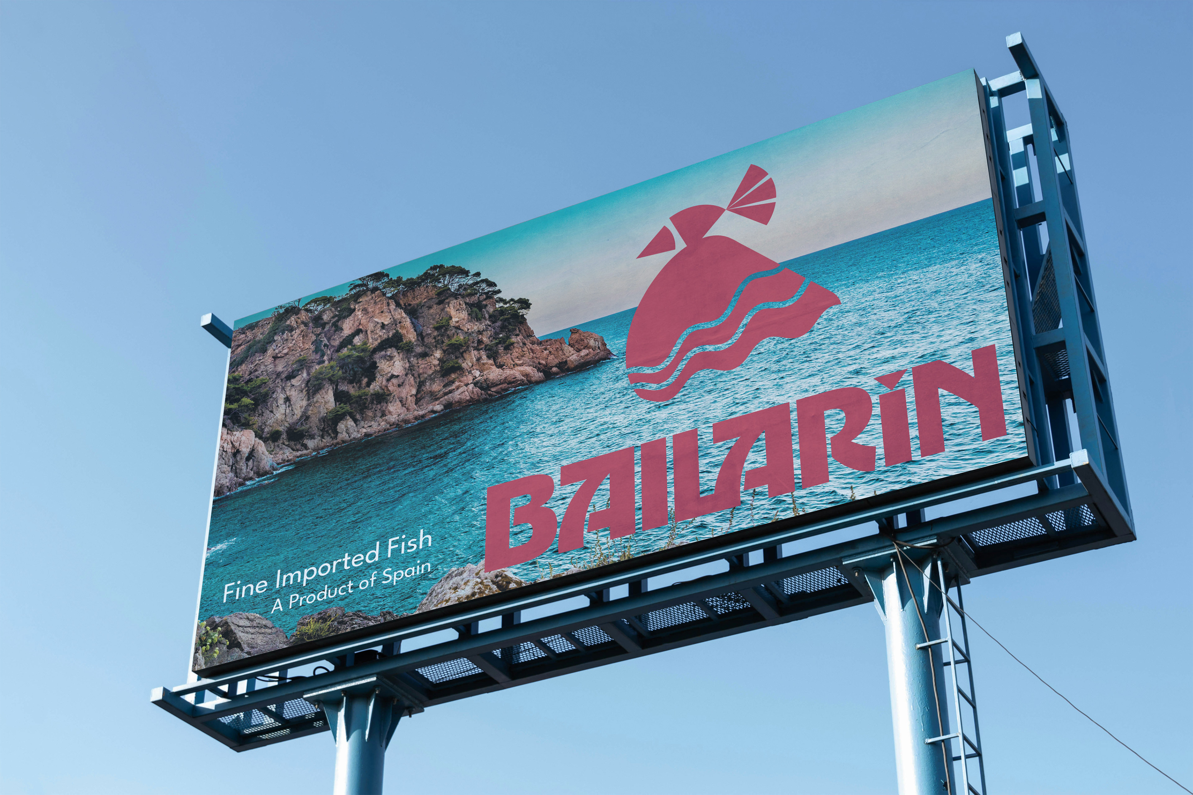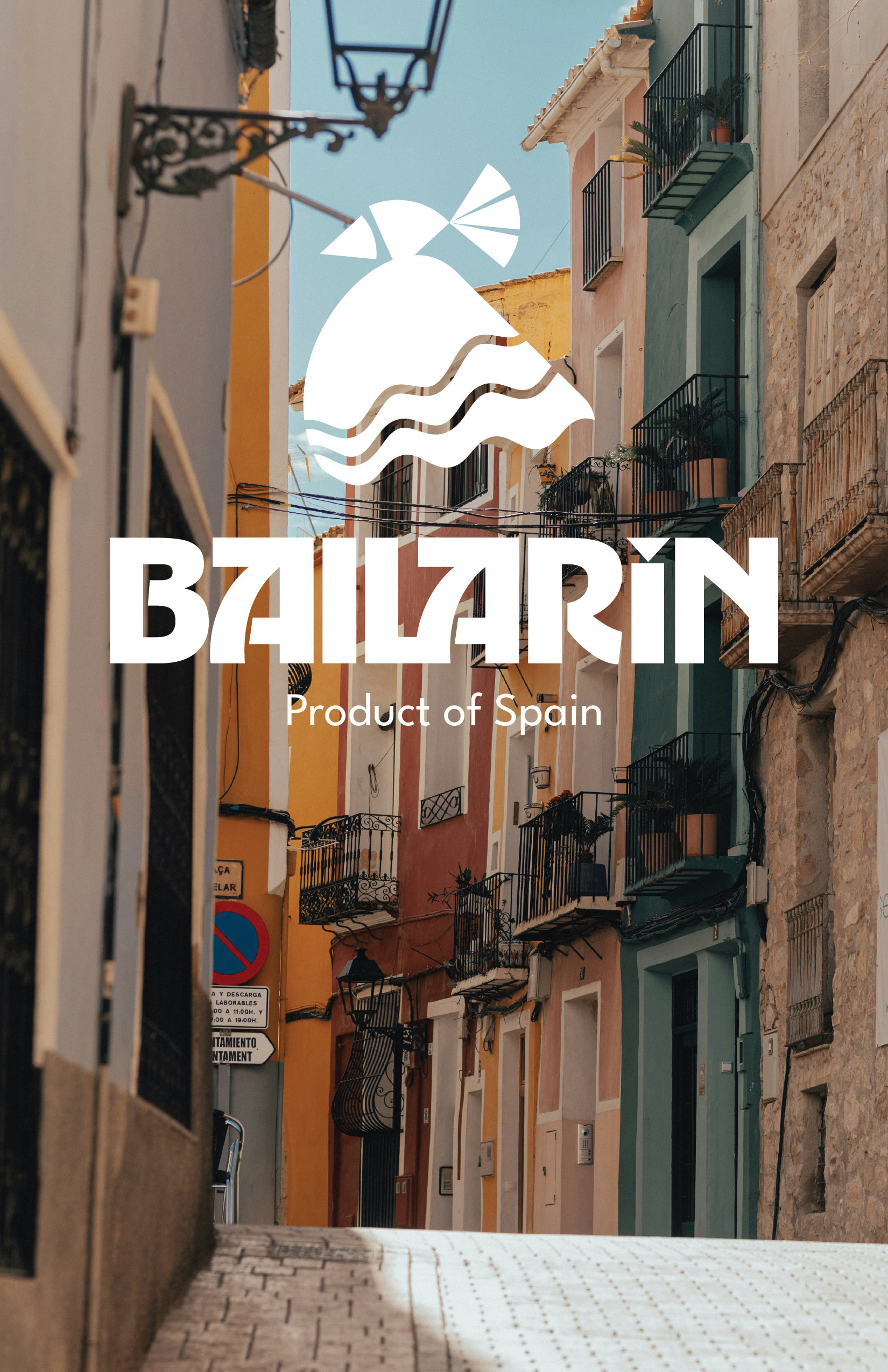 Bailarin is an import fine fish product of Spain. The logo emphasizes the rich tradition of flamenco dances, with the watery flowing dress, and the dress top representing a fish with its tail doubling as a "fan" element, often used in flamenco dances. The color scheme is a vibrant pink and black palette, a departure from traditional Spanish hues to display a more modern flare.